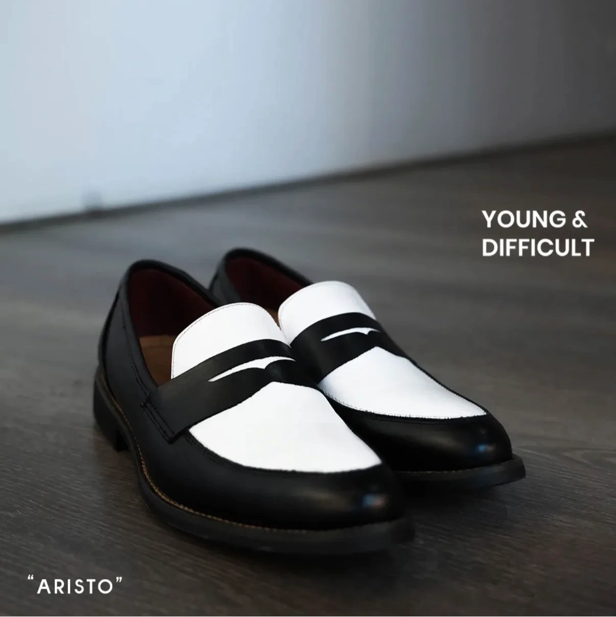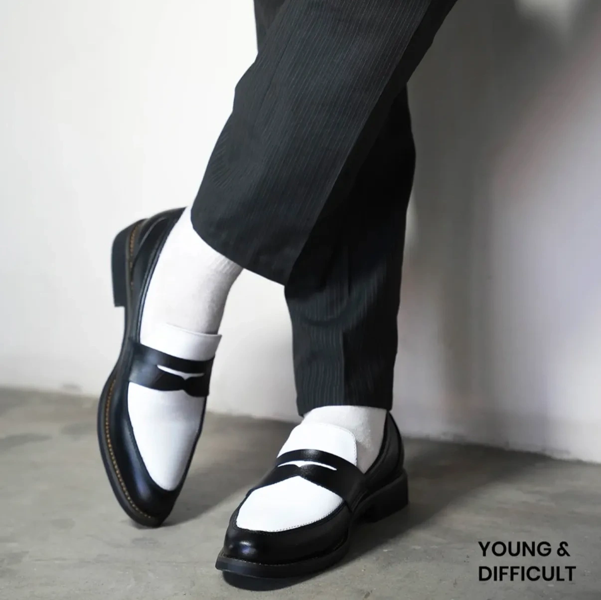 Black and White Men's Single Sole Loafers Leather by Young and Difficult