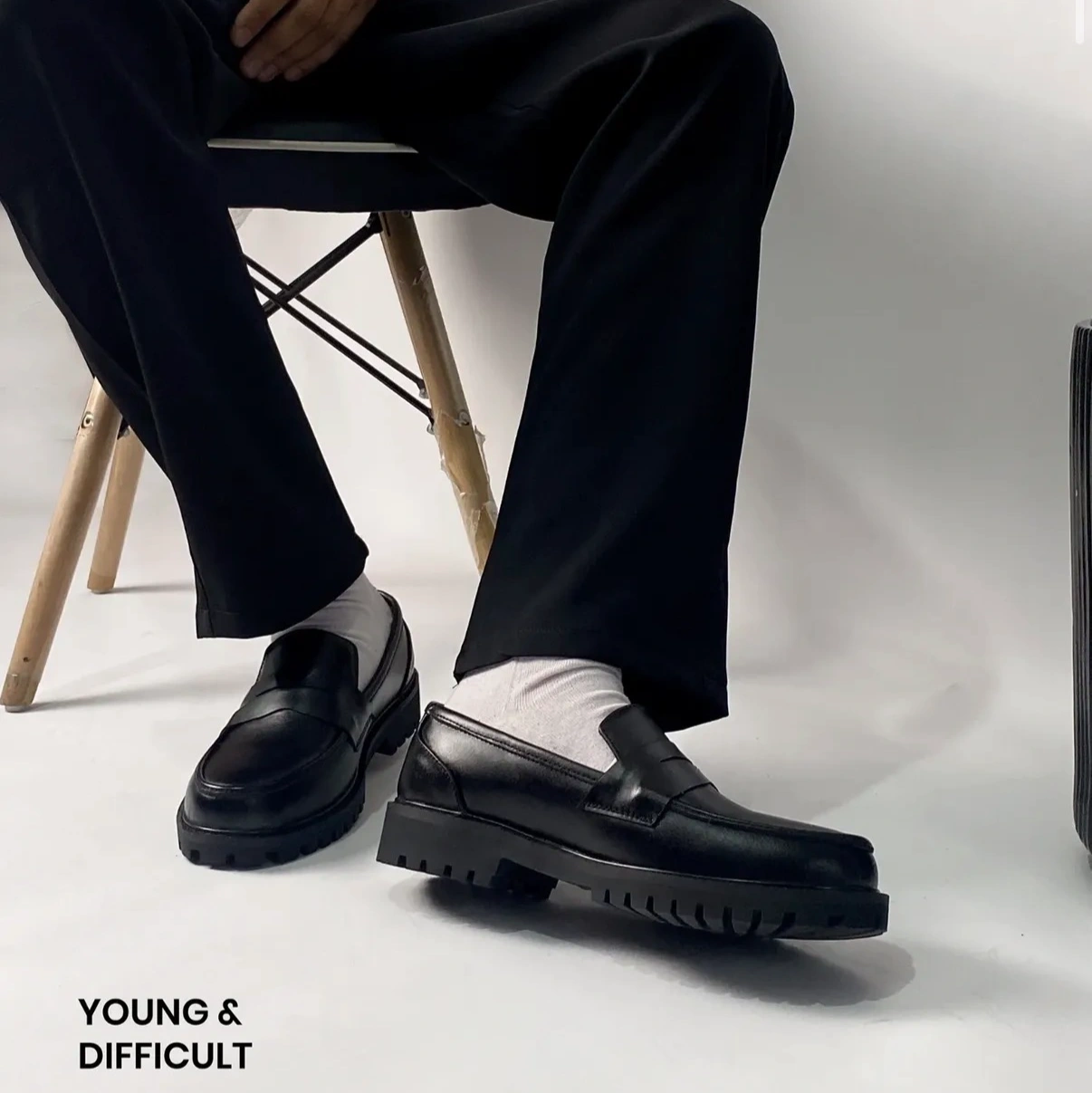 Double Sole Men's Black Leather Loafers by Young and Difficult.
